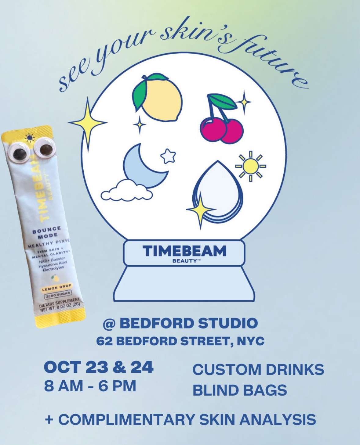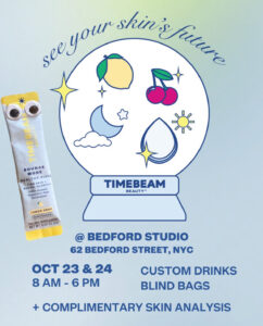 📅 10/23 ⏰8 AM – 6 PM 📅 10/24 ⏰8 AM – 5 PM 📍Bedford Studios, 62 Bedford St, New York, NY 10014 🍵 Join Timebeam Beauty for the Trick or Treatment event — sip on themed coffee, tea + matcha, discover new products, and leave feeling absolutely beaming.