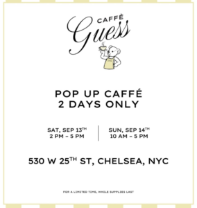 🐝 Caffè Guess is popping up in Chelsea for 2 days only! Enjoy complimentary coffee, gelato & more in a chic café-inspired experience.