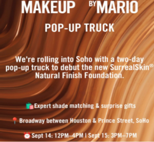 🐝 Makeup by Mario is rolling into SoHo with a pop-up truck to celebrate the NEW SurrealSkin® Natural Finish Foundation! ✨ Stop by for pro shade-matching, exclusive gifts & surprises.