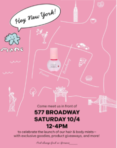 Β πNYC cuties! Celebrate the launch of our Hair & Body Mists πΈβ¨ Treat yourself to:Free deluxe samples, Cute merch & stickers, Fresh flowers. Plus, enter for a chance to join our PR list for a whole year π And the first 20 cuties in line will score a free Hot Round Brush plus instant bragging rights!