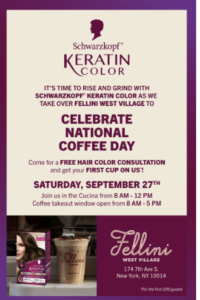 🐝💇♀️ Celebrate National Coffee Day with Schwarzkopf® Keratin Colour in the West Village.